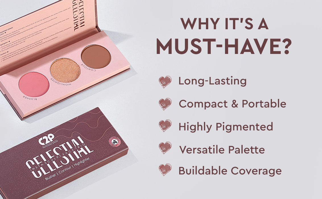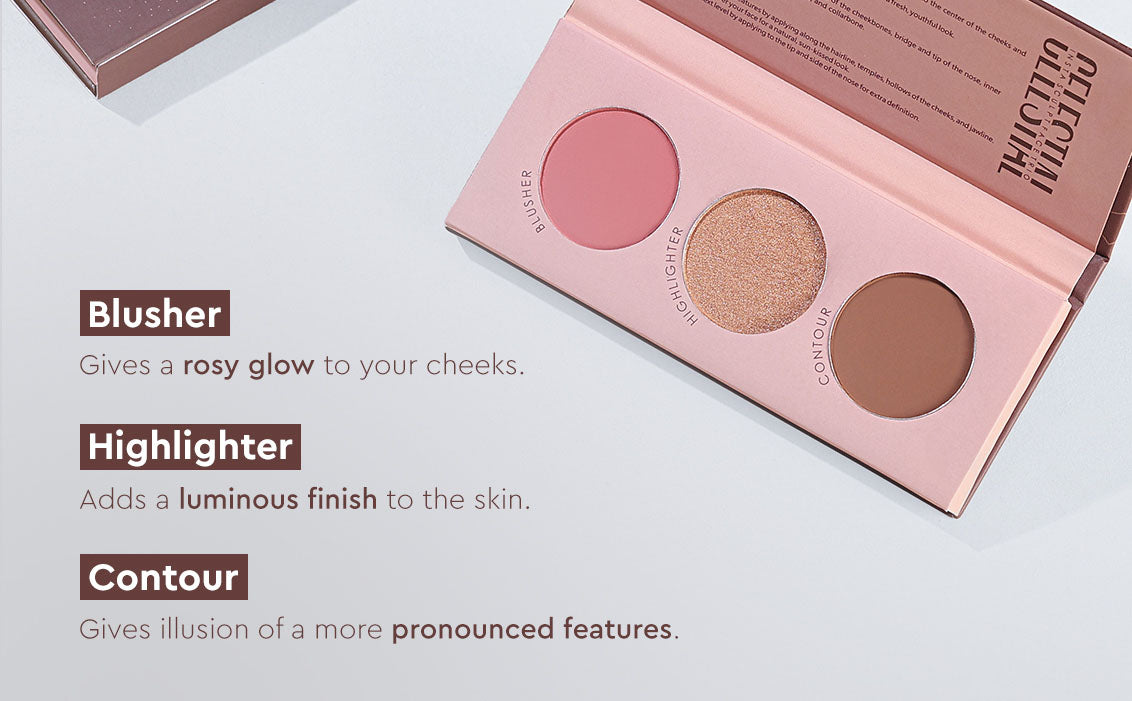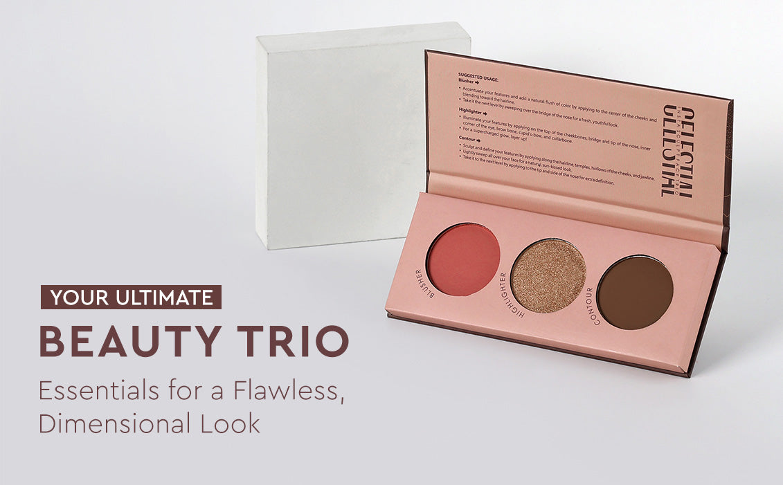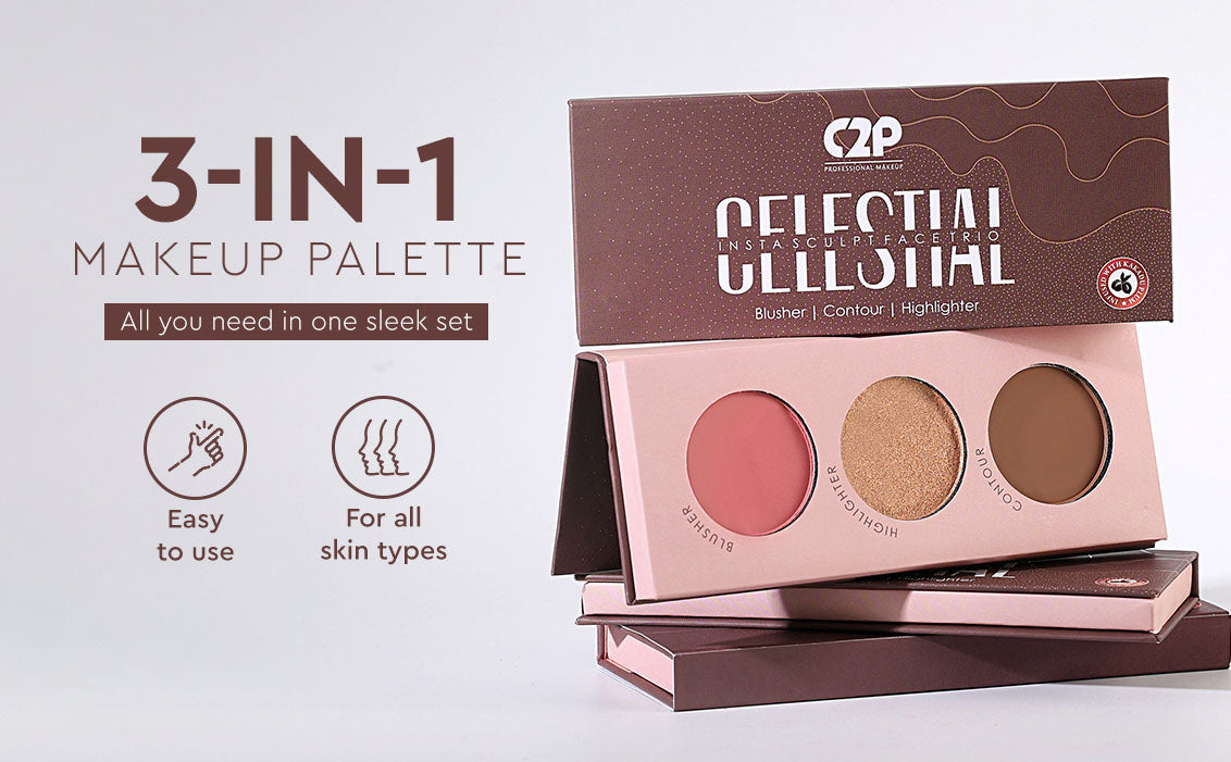 The CELESTIAL Insta Sculpt Face Palette is your go-to for effortless face definition. Designed with finely milled, high-performance powders, this palette lets you contour, blush, and highlight with seamless precision. The lightweight, blend-easy formula melts into the skin, giving a naturally sculpted, Insta-ready finish in minutes.