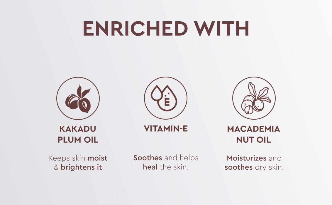 Cyclopentasiloxane, Silica, Vitamin-E, Macadamia Nut Oil, Kukadu Plum Oil, Phenoxyethanol
