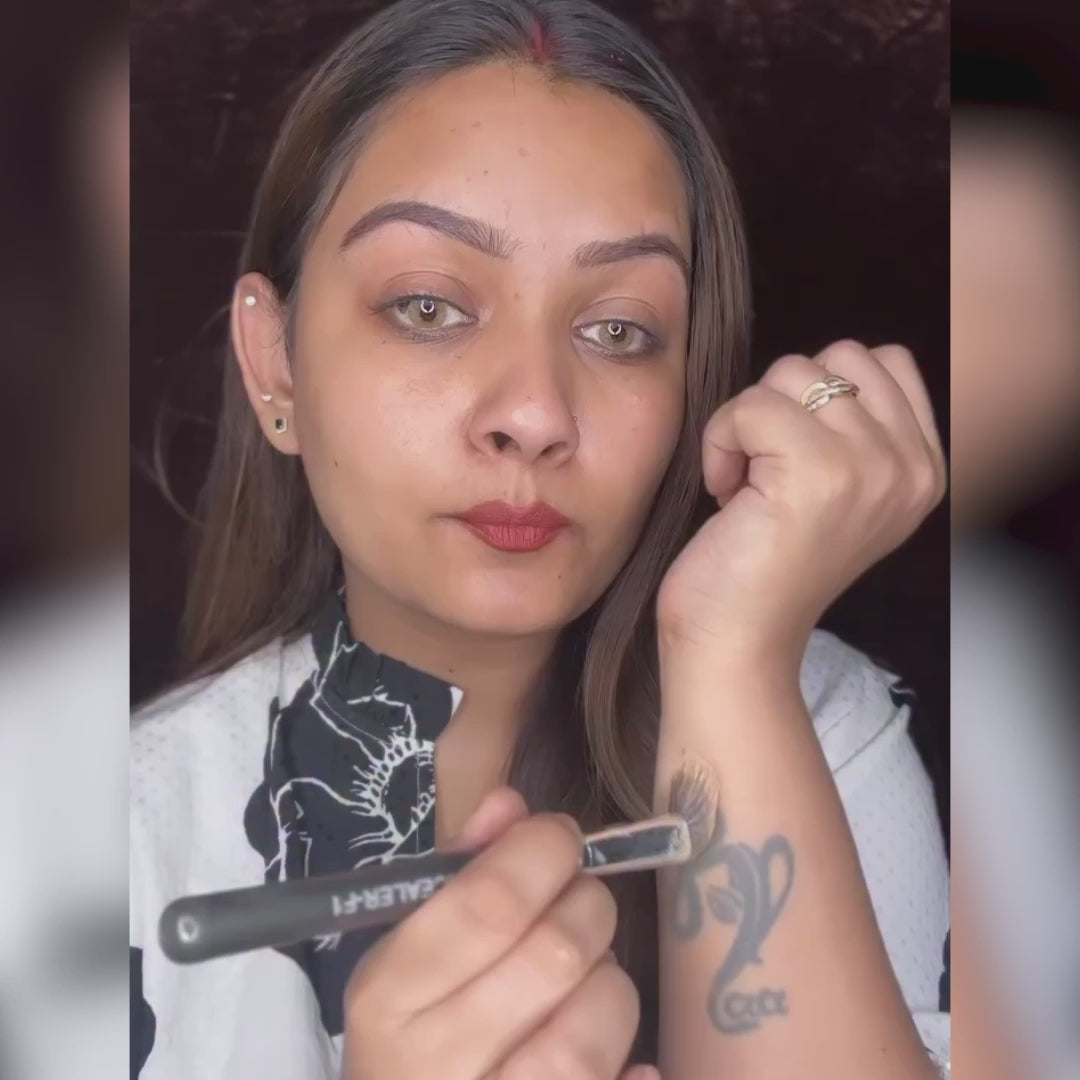 Blend with brush or sponge and set with powder